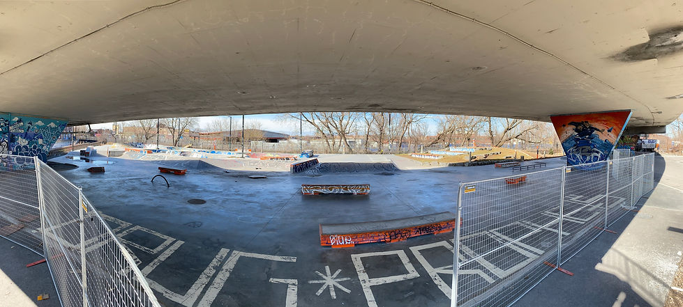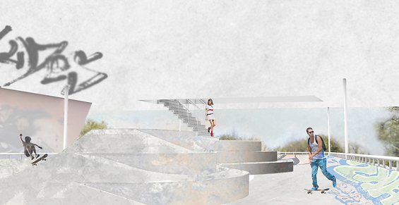Des quatre typologies susmentionnées, nous avons décidé de développer l’une d’entre elles pour l’atelier: la typologie se situant au Skatepark Van Horne. Le projet se résume à une plateforme suspendue sous le viaduc. Cette plateforme est donc accessible via le tablier du viaduc et peut servir autant pour la pratique de la planche à roulettes que comme observatoire. La cohabitation entre les utilisateurs est importante. Une estrade est intégrée à la plateforme, ce qui permet l’assise pour le repos ou la contemplation.